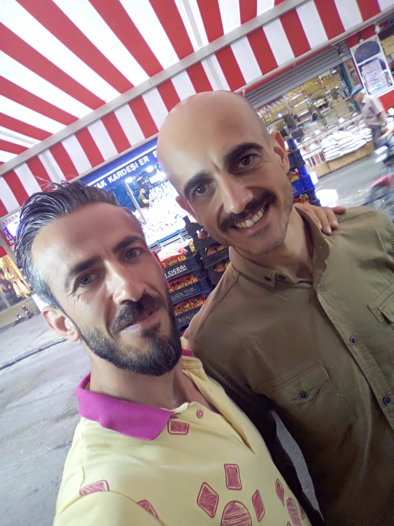 De haut en bas : Sedat Aksoy, marchand de légumes de son état – la barbe soignée, les yeux azurs, la photo a dû être refaite plusieurs fois (« pour les filles », m’a-t-il dit…). Je l’imagine bien gardien avec son autorité naturelle.