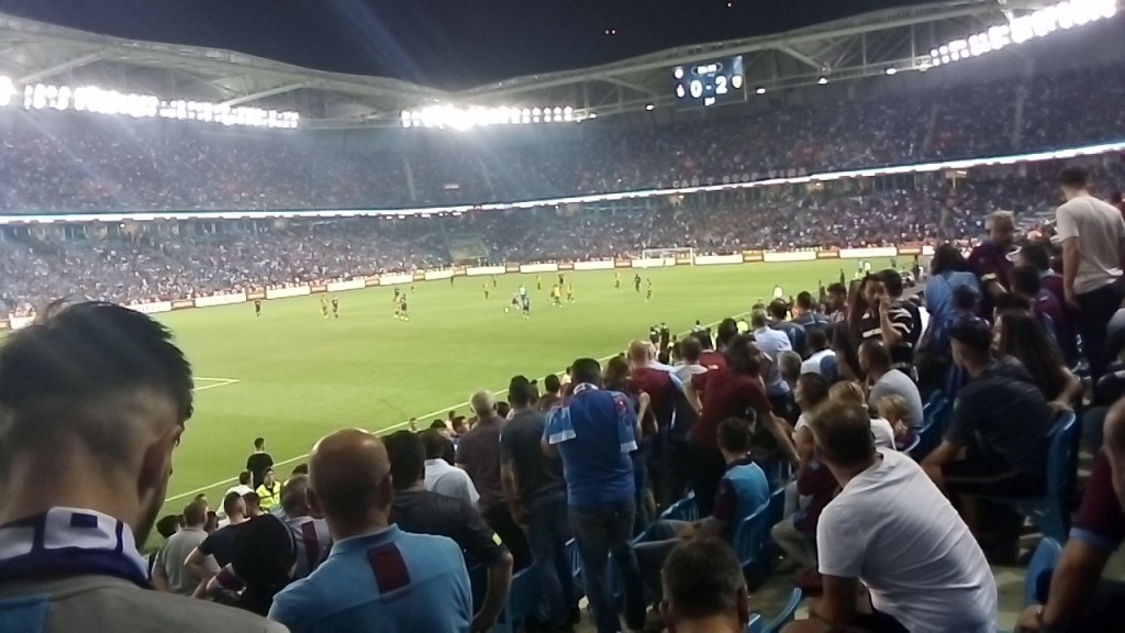 W Trabzonie, mieście na dalekim wschodzie tureckiego Morza Czarnego, znajduje się oczywiście HagiaSophia, imponujacy bizantyjski kościół z pięknymi obrazami. Jest też inna świątynia z innymi, bardziej kontrowersyjnymi bogami. Pośpiesznie wybraliśmy się na mecz ligi euro : Trabzon Spor z Aek Ateny.