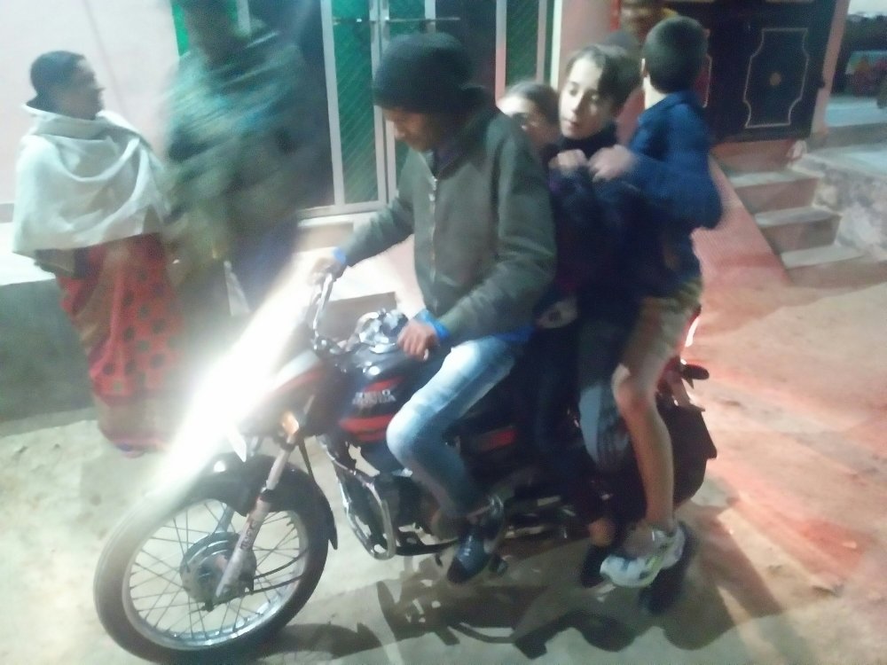 Les gens y mangent, se lavent, sèchent le linge, font voler les cerfs-volants, chassent les singes, se déplacent de toit en toit pour bavarder avec le voisin. Les femmes peignent gracieusement de longs cheveux noirs et brillants. À part boire du thé et manger de délicieux dîners chez les parents d’Ashu, nous n’avons rien fait de spécial… Les gars conduisaient nos gamins sur la moto, Bicky nous a emmenés à sa ferme, où nous avons préparé un délicieux plat avec ses amis. Nous visitions le village à vélo, nous mangions des galettes de pomme de terre dans un pub local. Chaque jour les garçons nous embarquaient dans des choses simples, authentiques et essentielles. C’est ainsi que le temps passe à Khajuraho : lent, chaleureux, un peu idyllique, au milieu de la nature et des animaux.