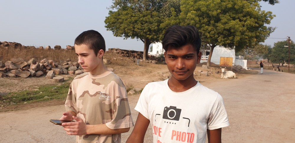 J’ai rencontré Ashu pour la première fois au pied d’un magnifique temple hindou à Khajuraho. Le garçon se tenait parmi un groupe de jeunes guides, attendant de potentielles victimes. Ashu me branche : « hello, j’aime beaucoup tes lunettes! « , dit-il. Je l’envoie un peu balader, car cette attitude nonchalante ne me plait pas trop sur le coup (plus tard, je découvrirai que derrière cette facette se cache un adorable garçon de quinze ans, doux et gentil). Sans rien lâcher, Ashu accoste Jozek et il nous invite chez lui pour un thé. Bicky, un ami de Ashu se joint en cours de route. C’est ainsi que commence l’aventure avec nos… potes? guides? hôtes? Je ne sais pas comment expliquer sur quoi est basée cette relation.