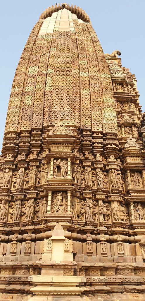 Saini travaille à la réception d’un hôtel à Khajuraho, où nous nous sommes arrêtés. Il porte des bonnets rigolos, bizarroïdes. Un peu maniéré, on dirait un majordome. Nous devenons quasi intimes, lorsque Saini, pas à l’aise avec le terminal de carte bancaire, se trompe d’un virgule, et nous encaisse une facture multipliée par dix 😉